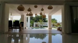 Villa à vendre à Ngaparou 2136 m2 de terrain. Magnifique propriété contemporaine à proximité de la mer et des toutes commodités à 1km.Elle se compose d'une grande villa avec un vaste séjour/salon et cuisine à l'européenne, 3 grandes chambres avec salle d'eau et dressing vue piscine, 3 studios équipés indépendants de 45m2 avec terrasse donnant sur la piscine, son pool house avec bar et salon, son jacuzzi chauffant 6 personnes, coin détente et massage et son joli jardin arboré. Equipement solaire autonome à 85% et piscine solaire. De belles prestations de qualité. Dépendances et parkings voitures. Idéal pour grandes familles et chambres d'hôtes.